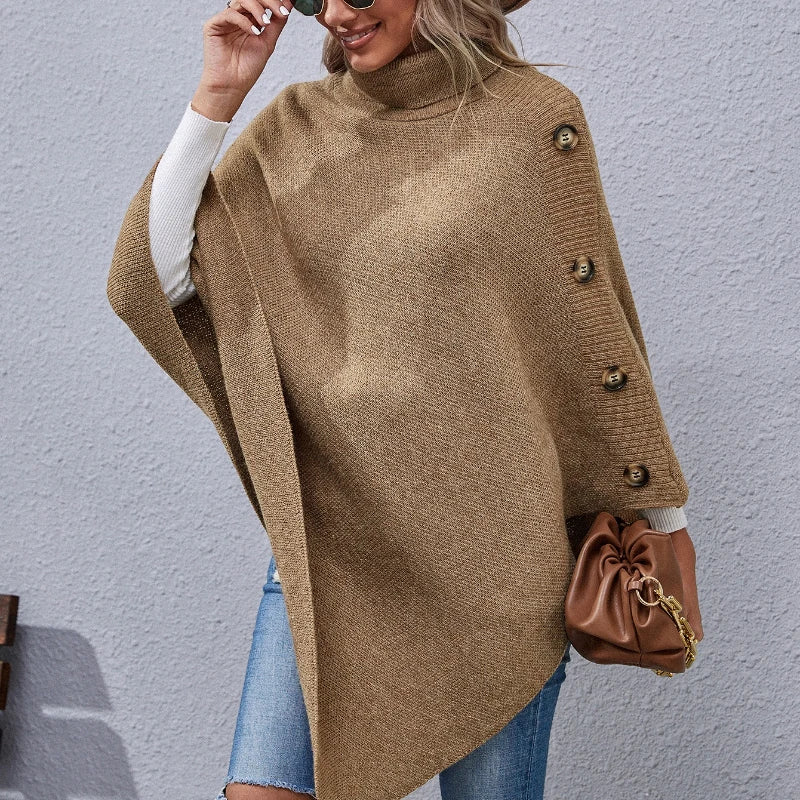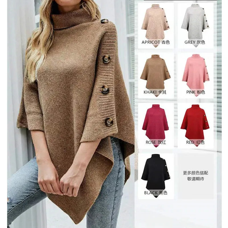 Fashion Winter Women Turtleneck Irregular Loose Pullover Shawl Cape Sweater Solid Color Autumn Knitted Long Tops Casual Clothing