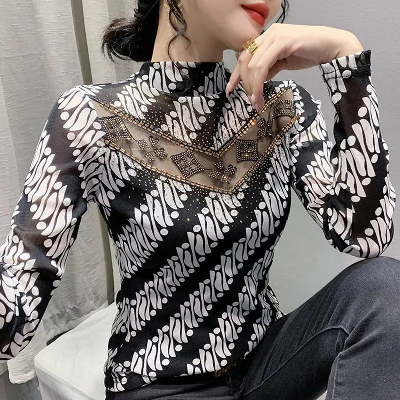 Women's Autumn Winter Fashion Half High Neck Pullover Long Sleeve Solid Color Simple and Casual Versatile Commuter Bottom Tops