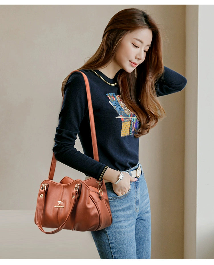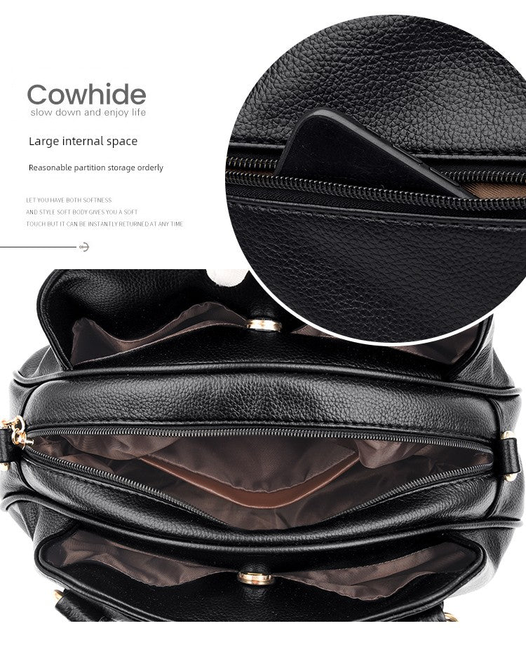 Women's Genuine Leather Portable Women's Bag 2025 New Arrival Fashion Large Capacity Versatile Messenger Bag Soft Leather Mom Bag for the Middle-Aged