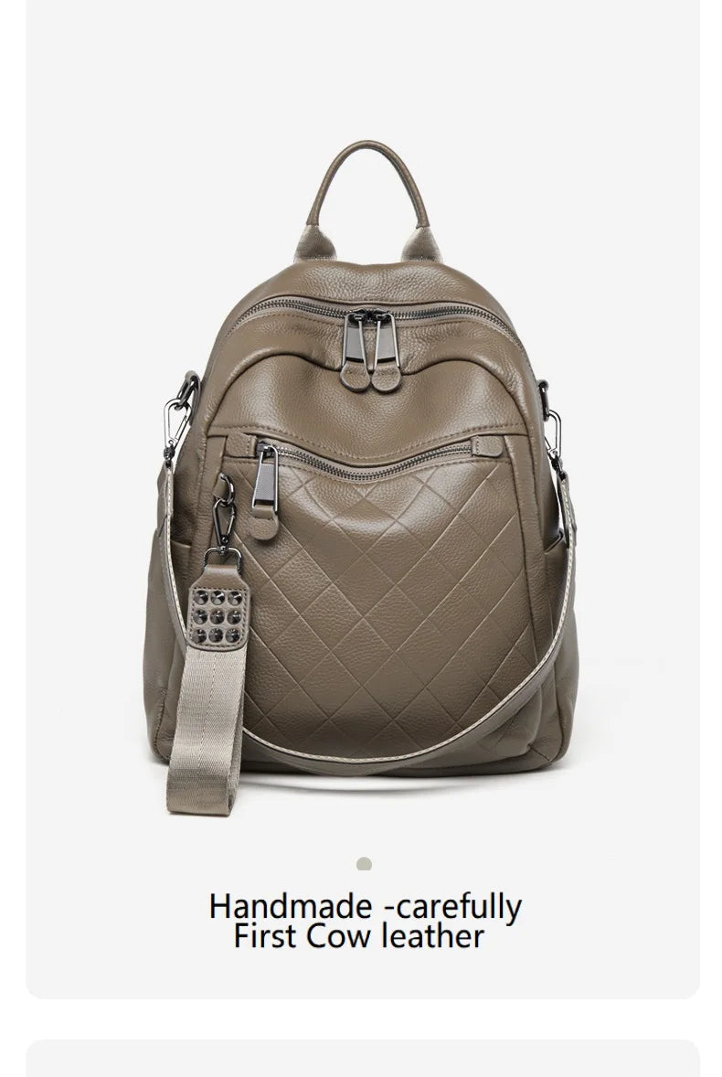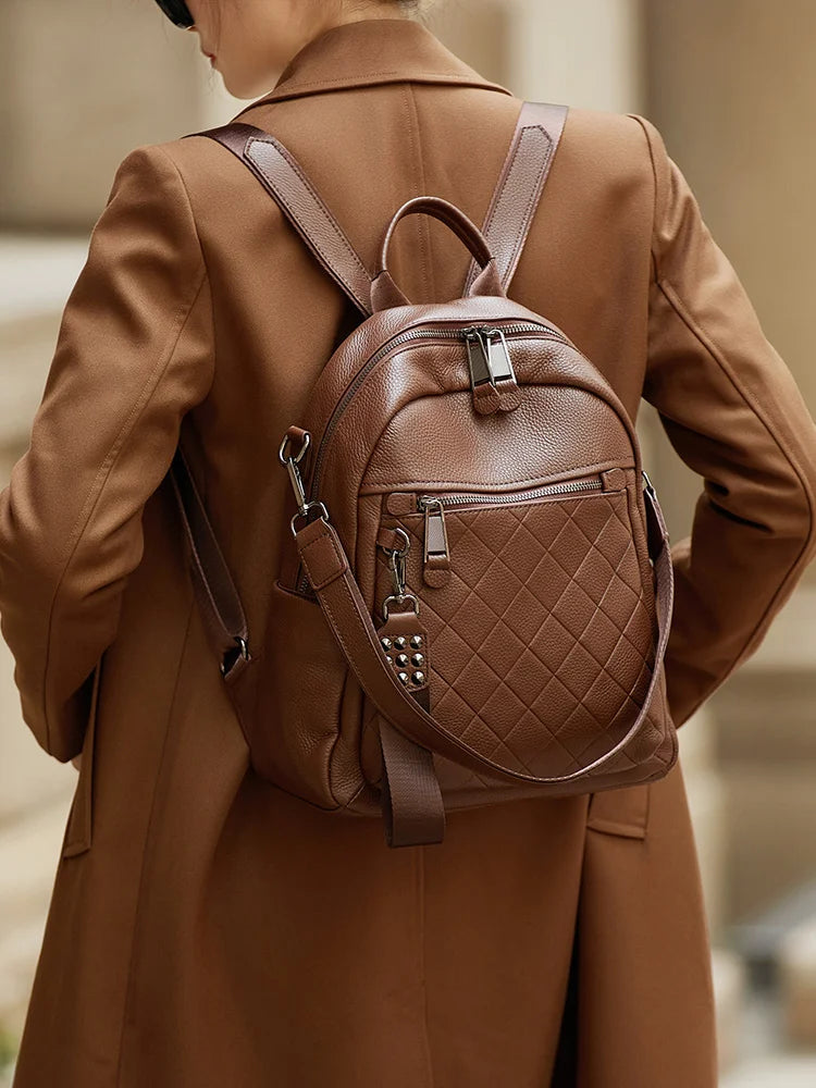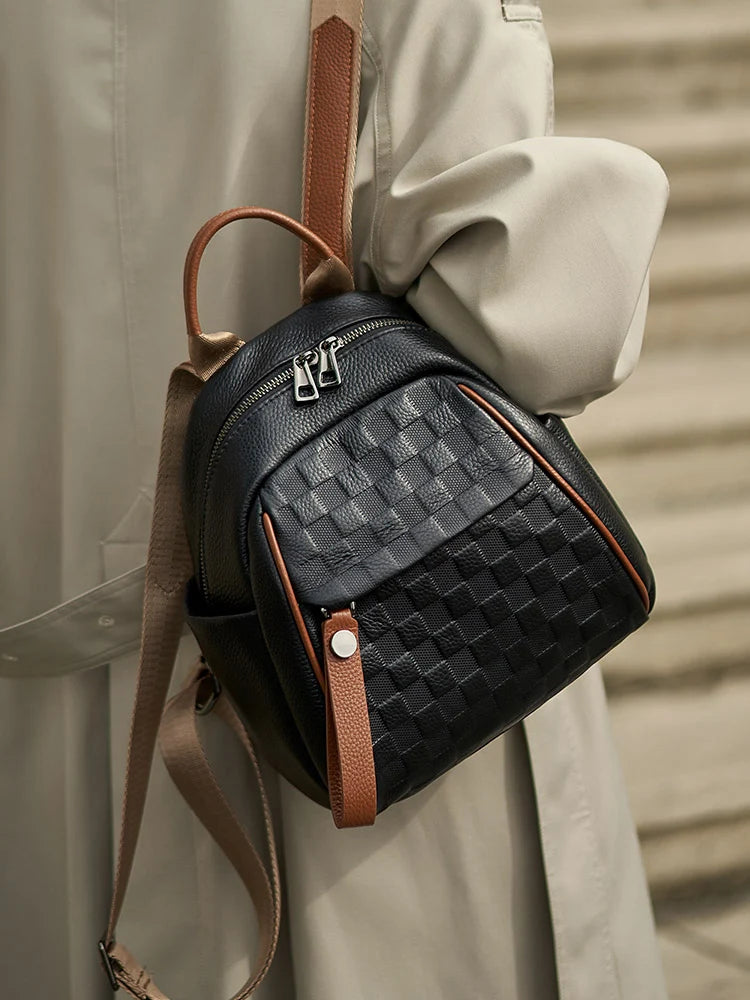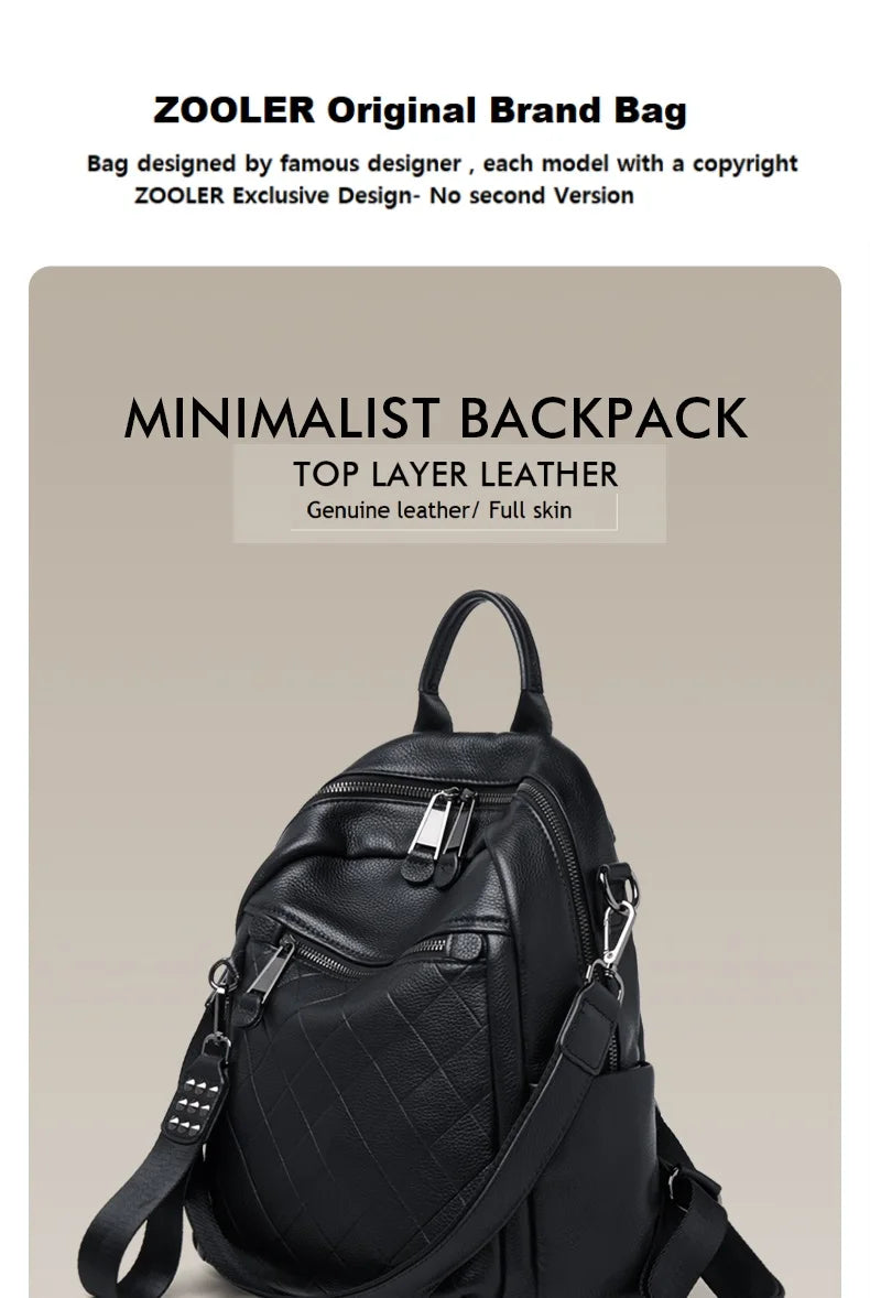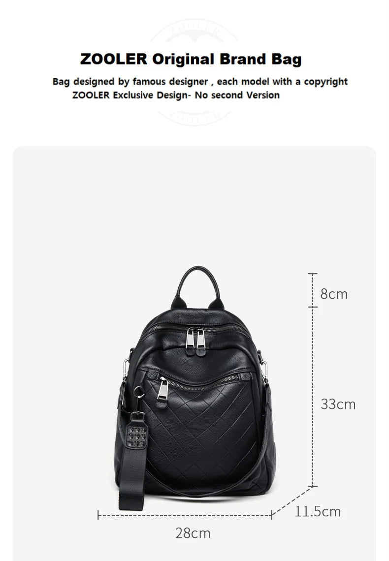 ZOOLER First Layer Genuine Leather Backpack Designed Plaid Large Capacity Backpack School Bags College Girl Hot#SC1703