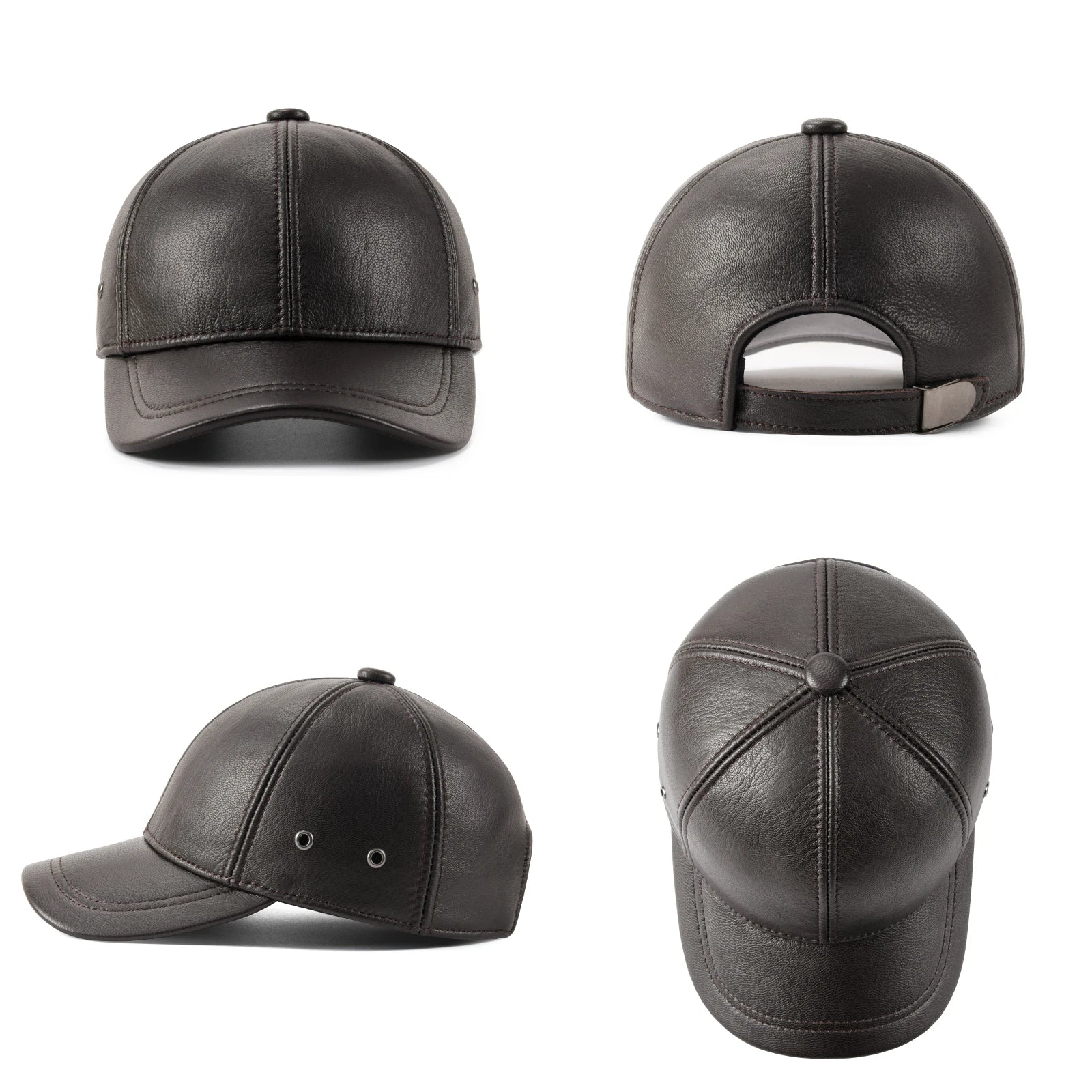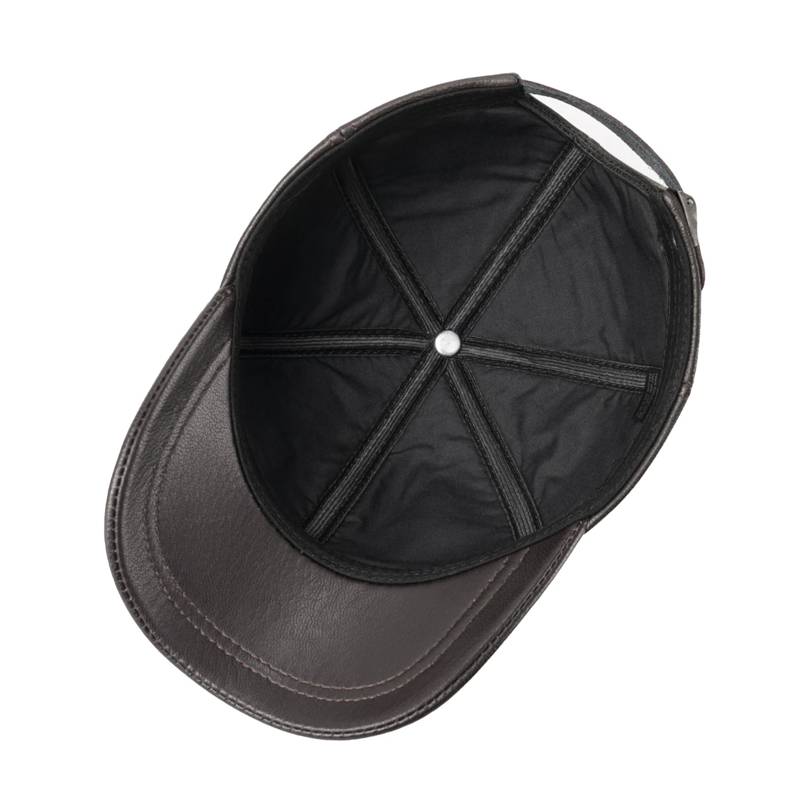 FEINION Genuine Leather Unisex Baseball Cap 100% Leather Winter Structured Flat Adjustable Back Strap Hat
