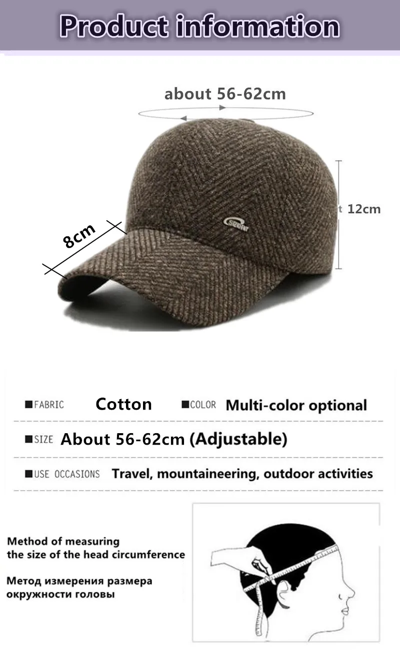Men's Winter Hat Middle-aged Warm Ear Protection Thickened Baseball Caps Adjustable Size Men Earmuffs Hats Casual Sports Cap