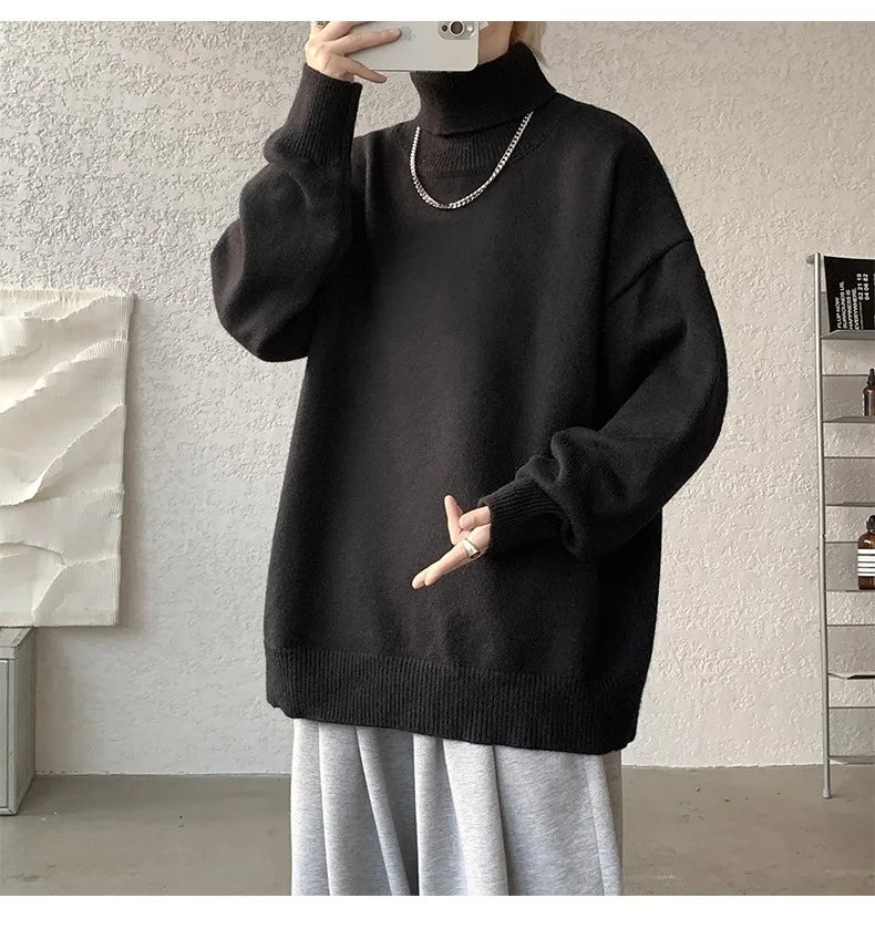 Knitted Warm Sweater Men Turtleneck Sweater Men's Loose Casual Pullovers Autumn Winter New Solid Color Pullovers M-XXXXXXXXL