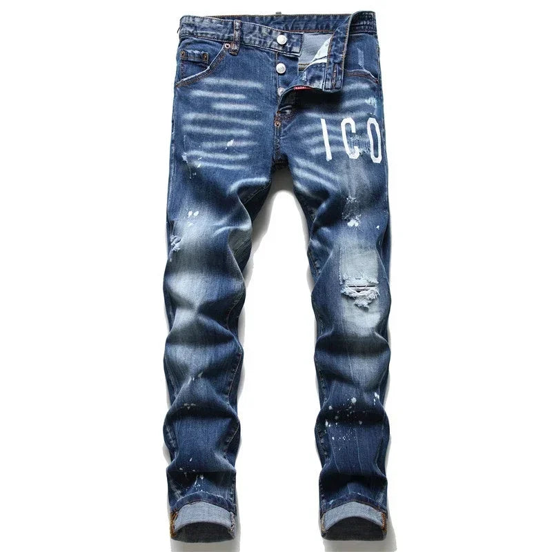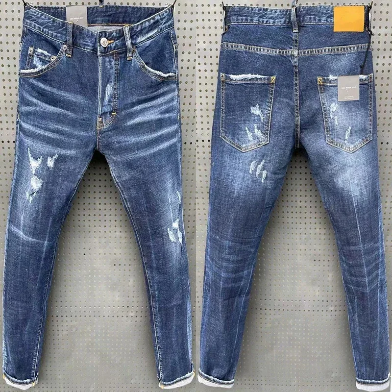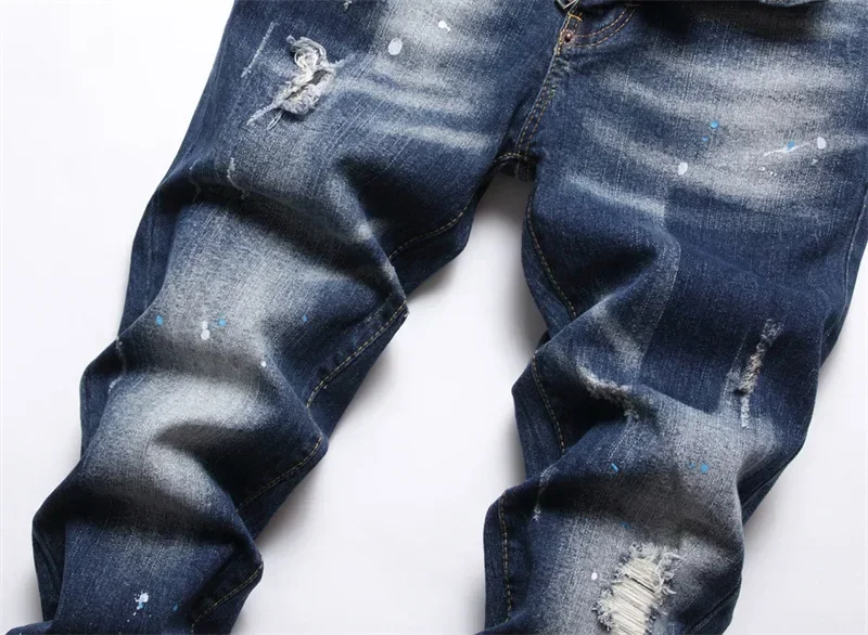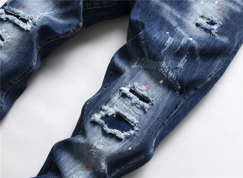 Mens Ripped Jeans Quality Male Classic Luxury Brand Blue Denim Pants Men Street Fashion Slim Fit Stretch Skinny Jeans Size 44-54