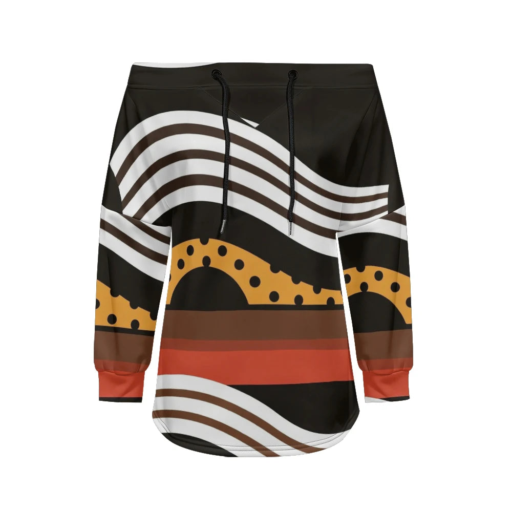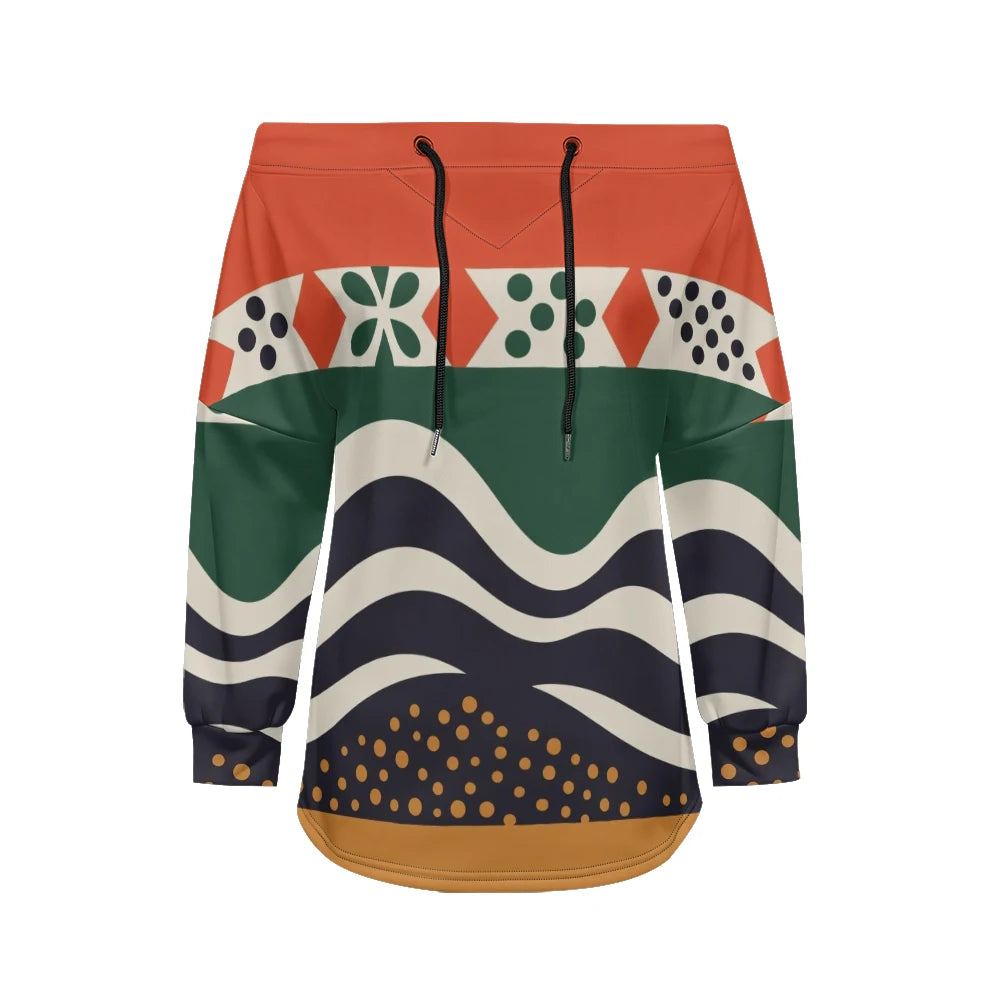 Trendy Off-Shoulder Sweatshirts with Striped & Polka Dot Patterns Drawstring Casual Loose-Fit Top for Women Casual Streetwear