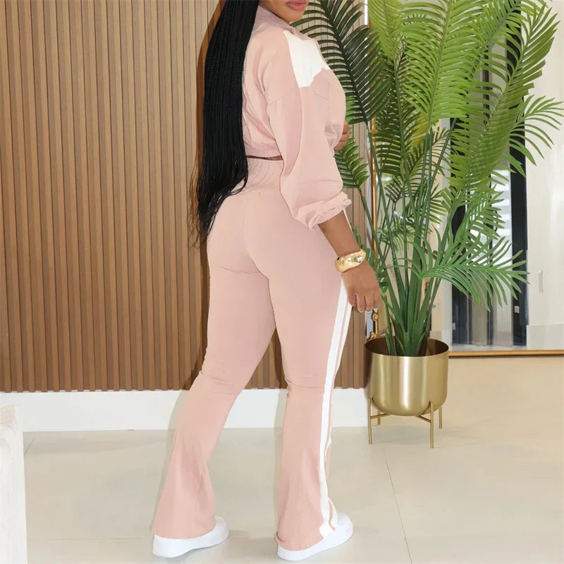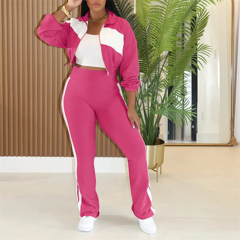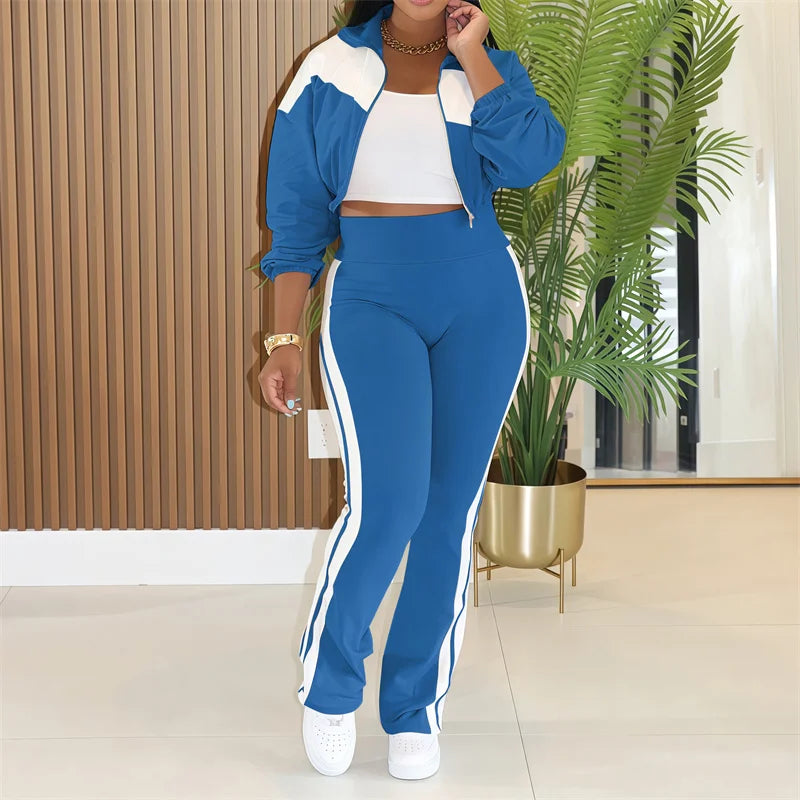 Doyerl Striped Casual Tracksuits Woman 2 Piece Sets Active Wear Joggers Workout Zipper Jacket Top and Sweatpant Ensemble Sport
