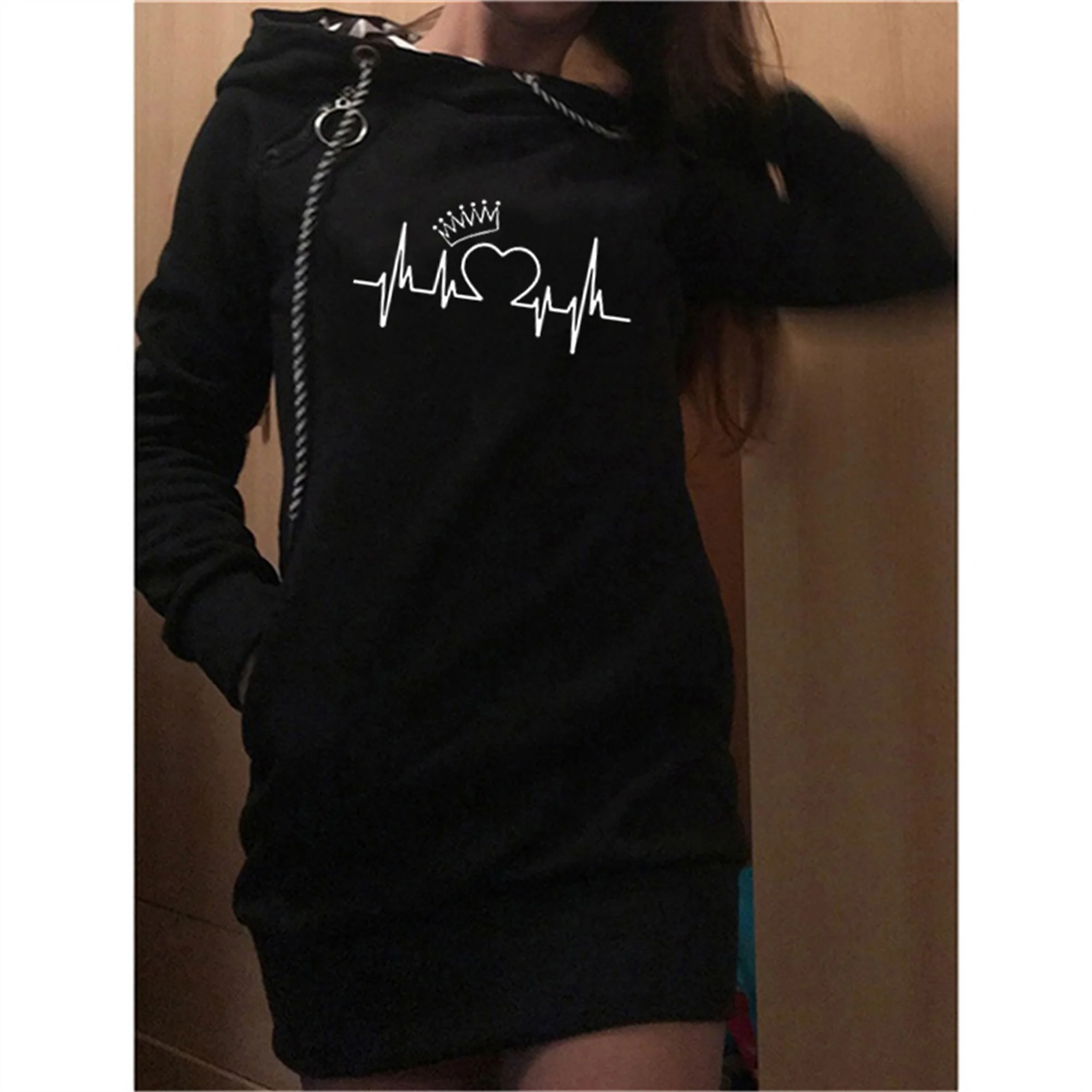 New Fashion Women's Casual Dresses Long Sleeve Sweatshirt Pullover Dress Pocket Hooded Hoodie Dresses