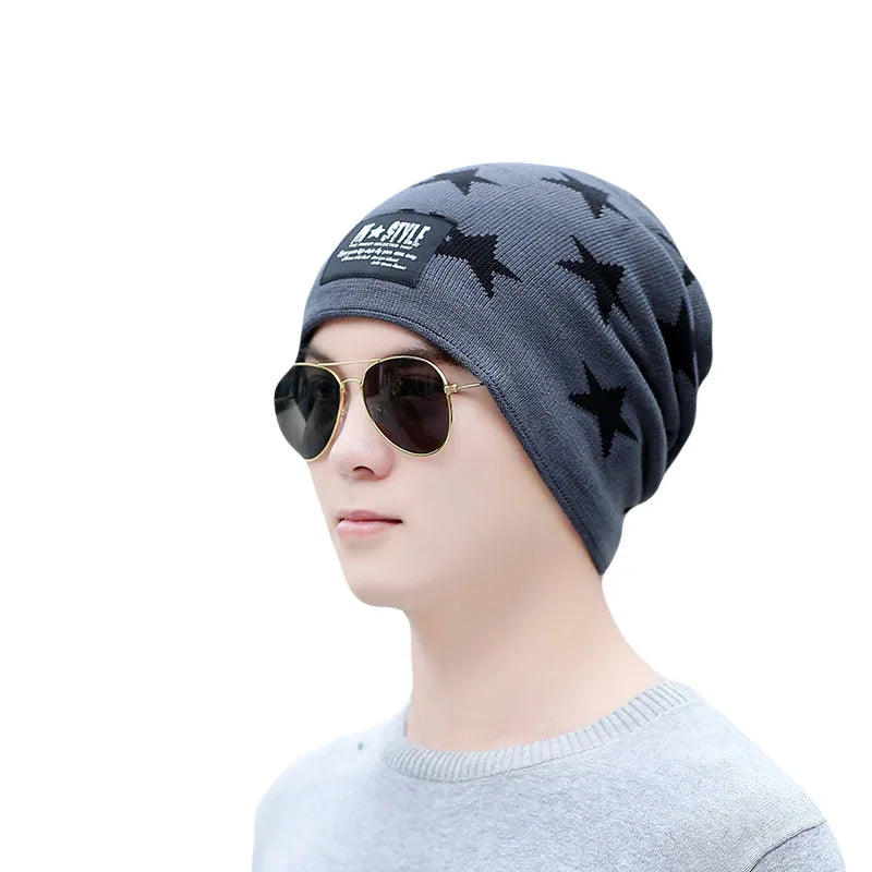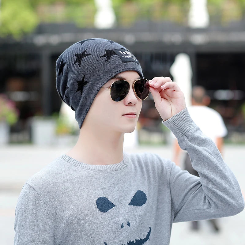 New Winter Hat For Men Thick Beanies Warm Adult Casual Knit Brand Bonnet Star Hip Hop Super Cool Skull Skullies Unisex Hats