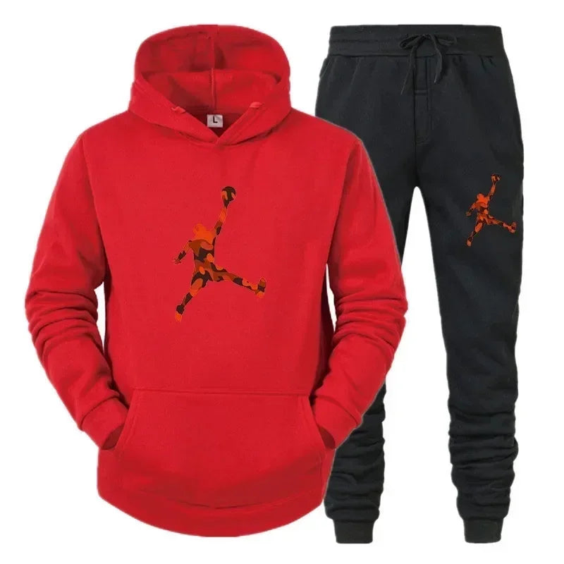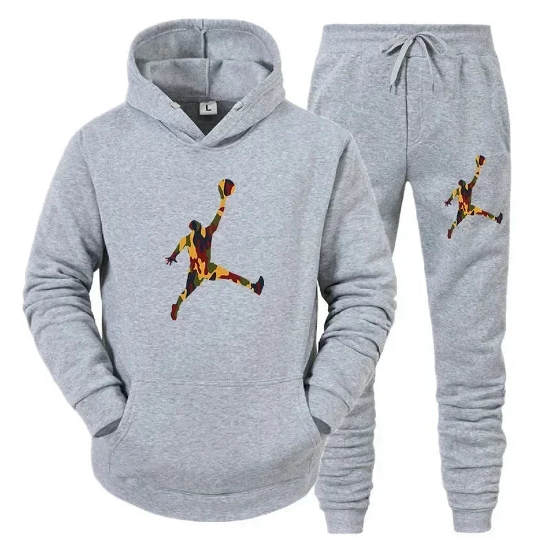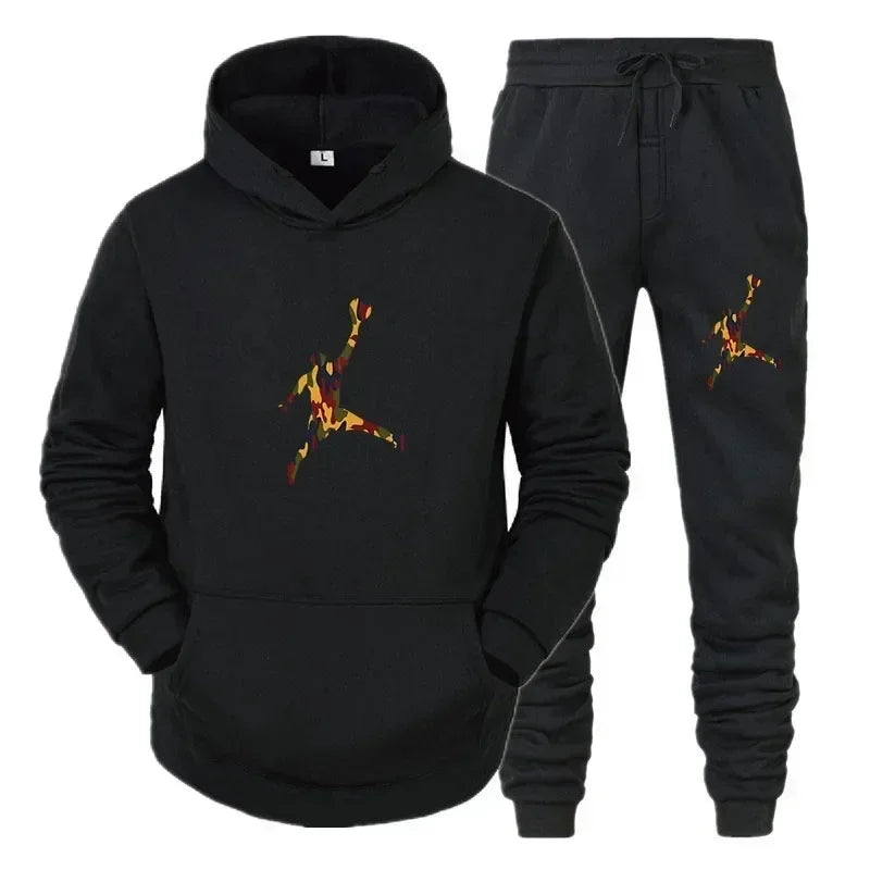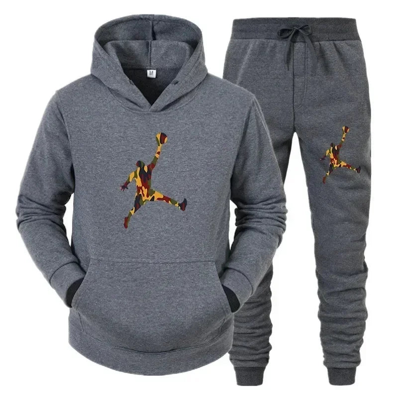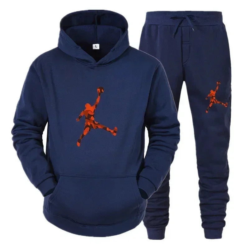 Men's fashion casual sportswear, outdoor fitness jogging set, autumn and winter pullover hoodie + warm pants two-piece