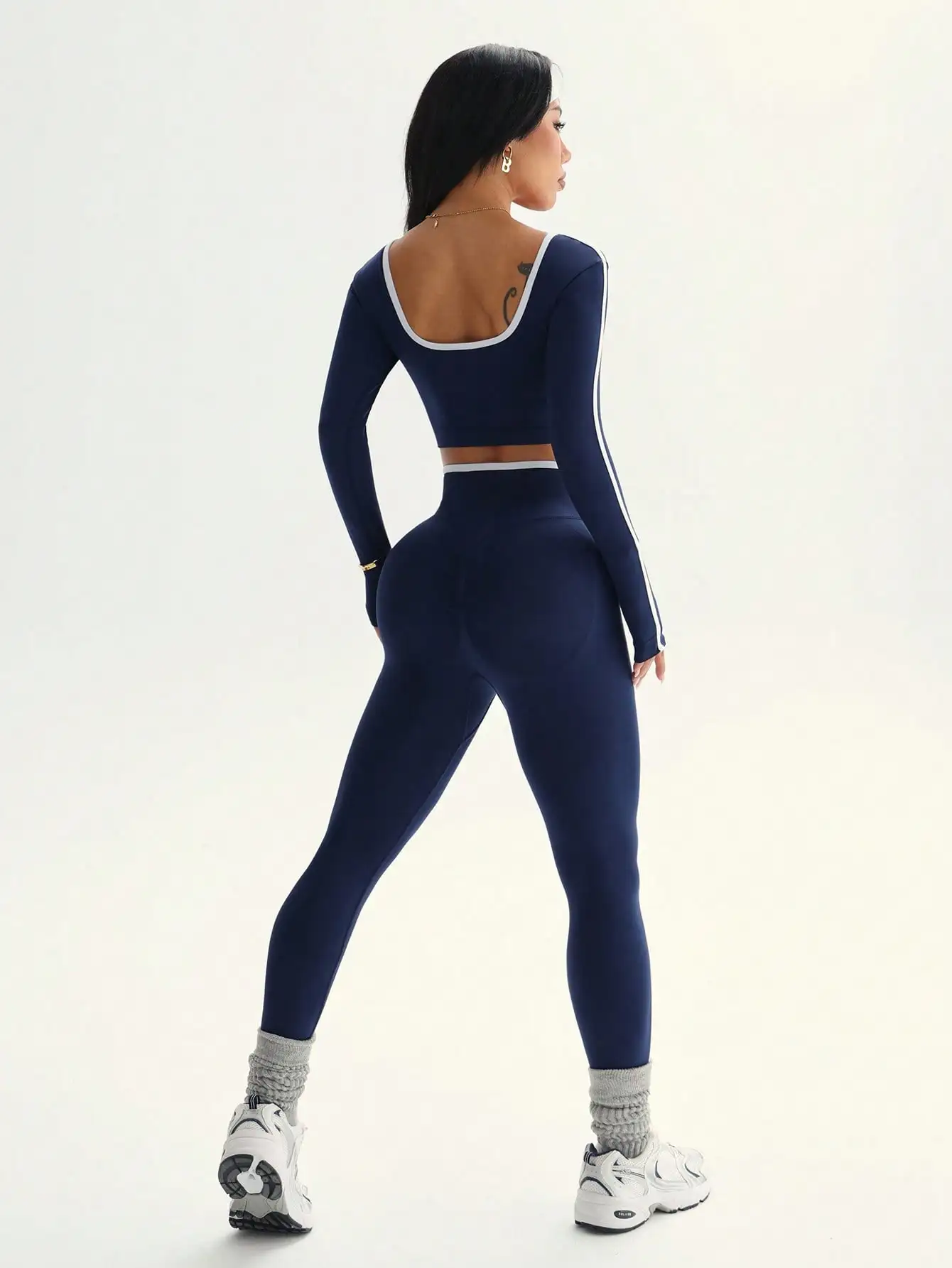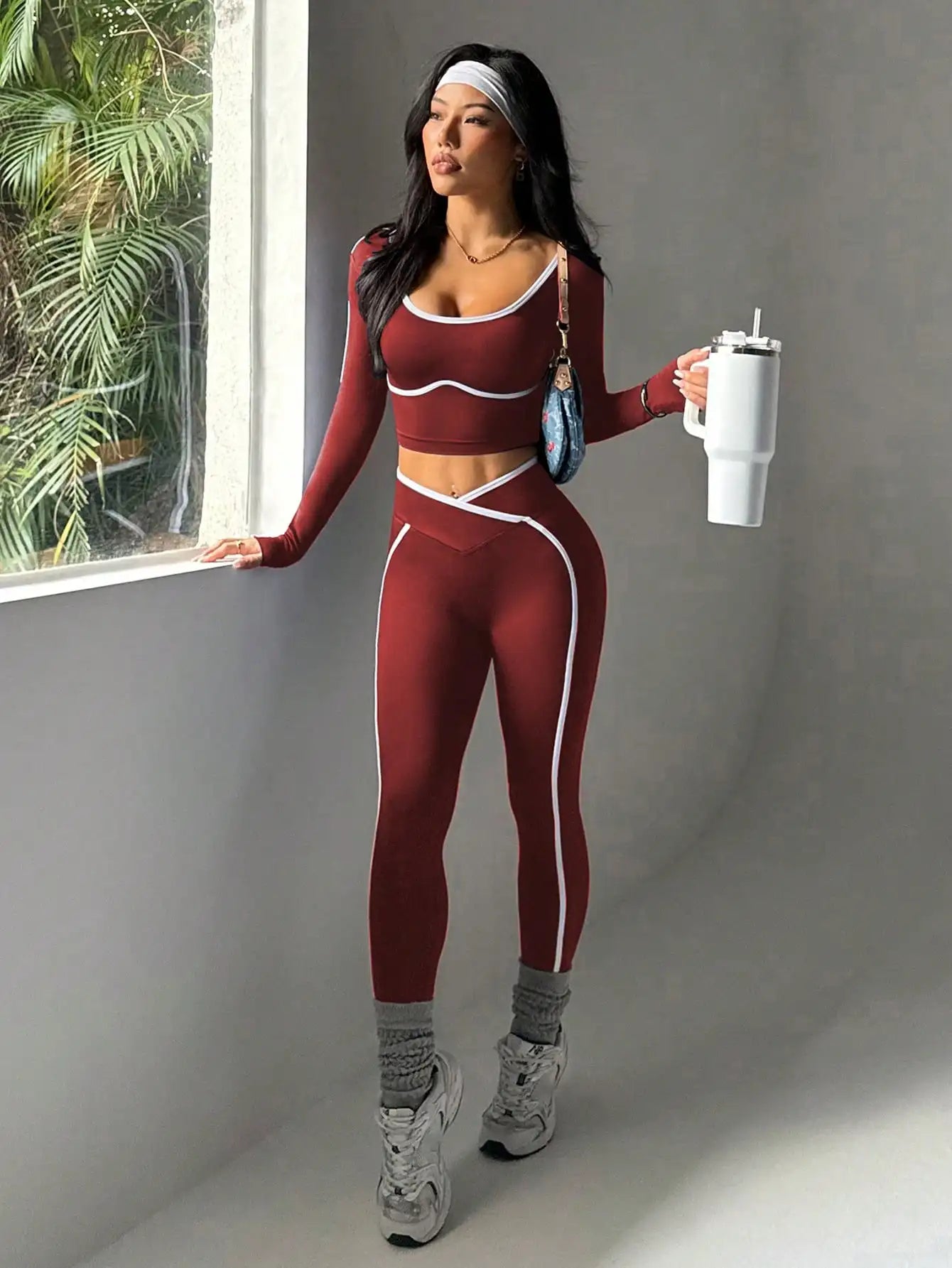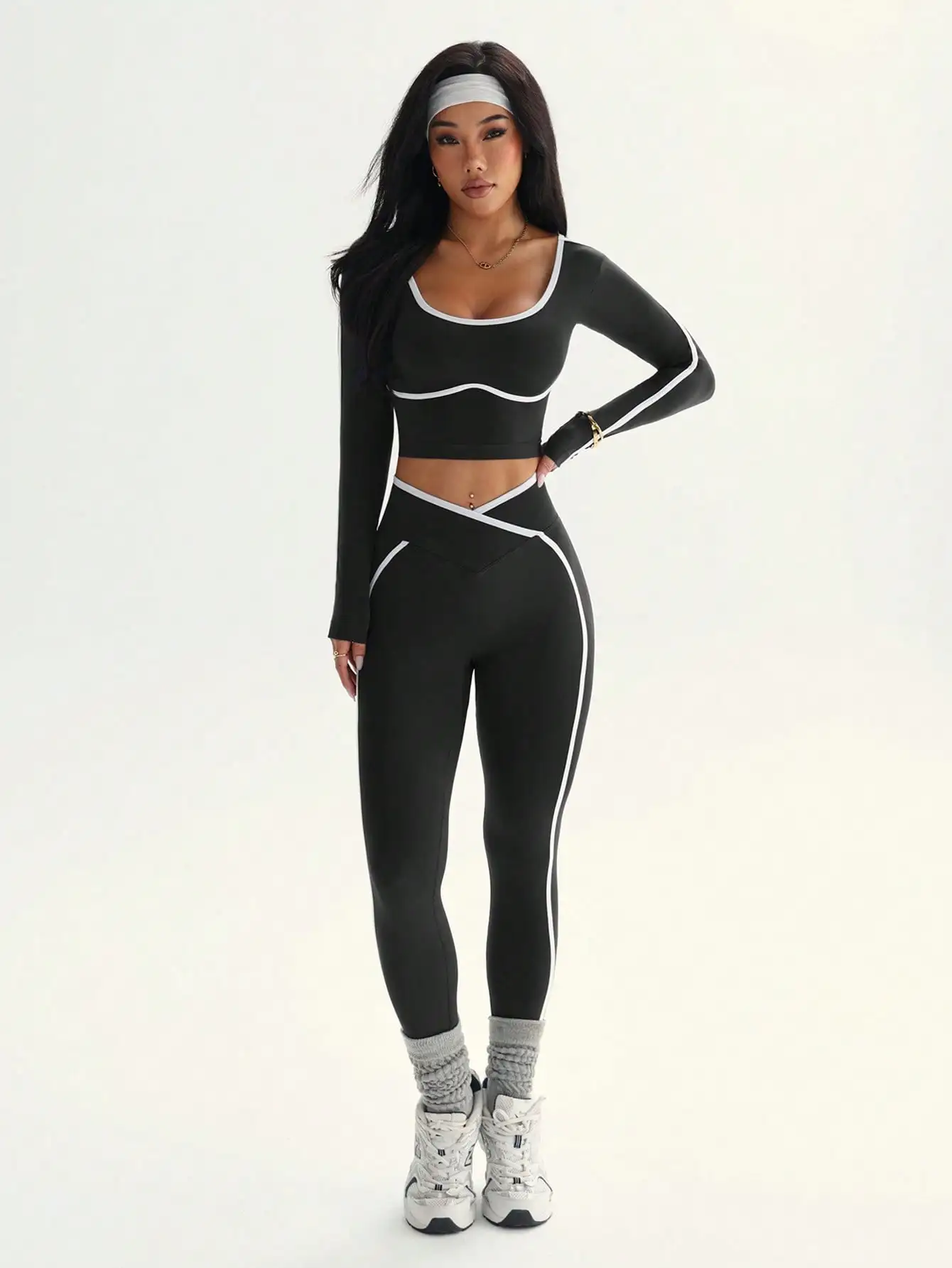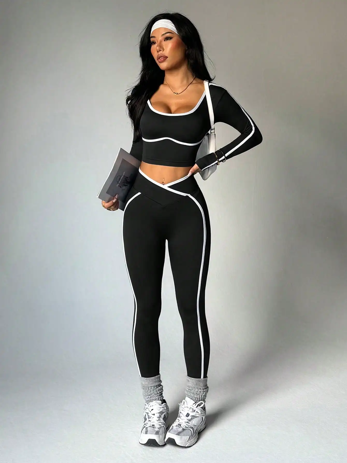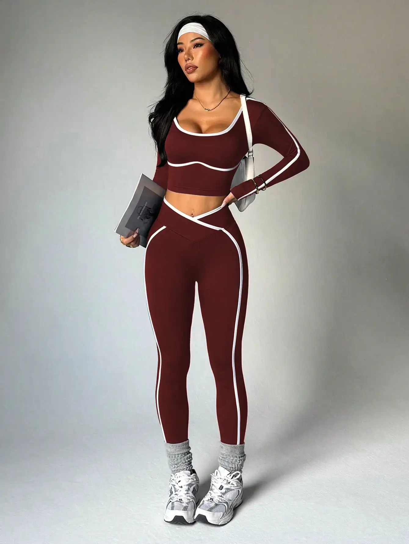 With a sporty style and high-waist cut, this pant set combines functionality with fashion, ideal for casual outdoor sports.